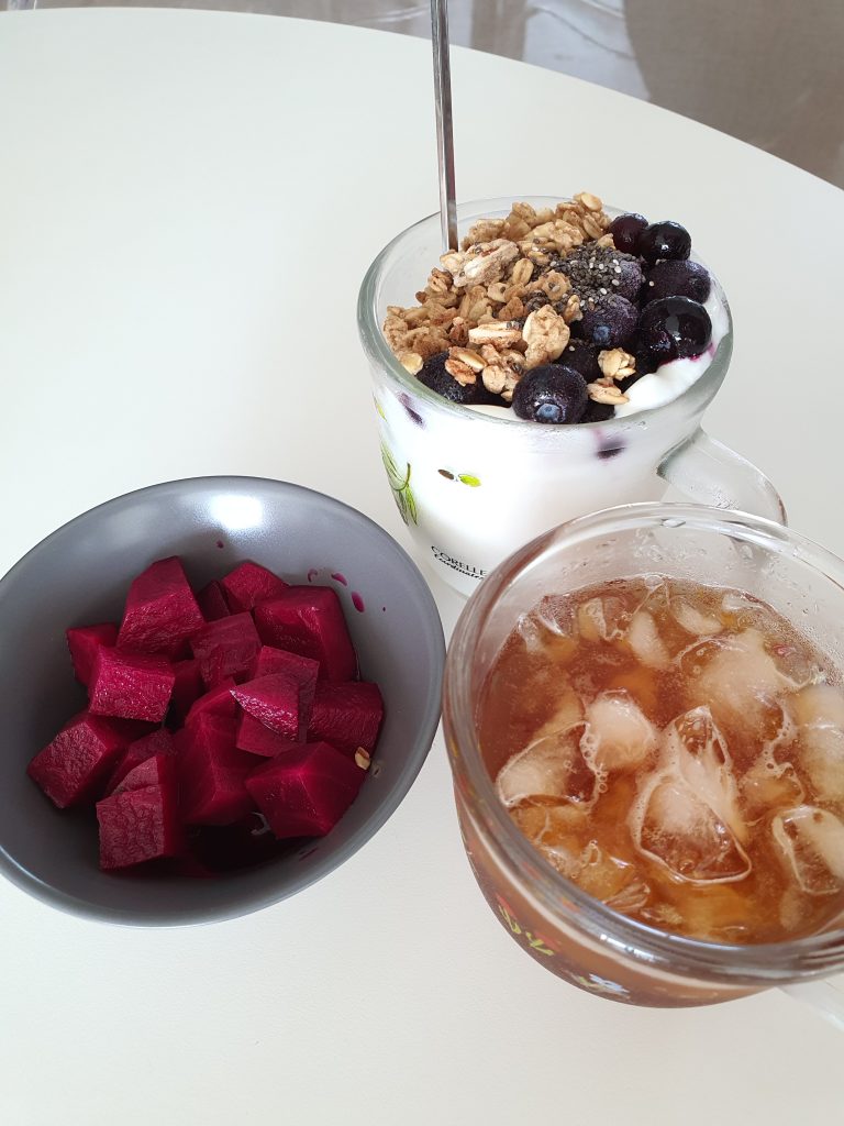 베지터블 식단으로 오늘의 브런치는 요즘 너무나도 간편하고 맛있게 먹고 있는 플레인 요거트가 메인인 요거트 밀 이다.